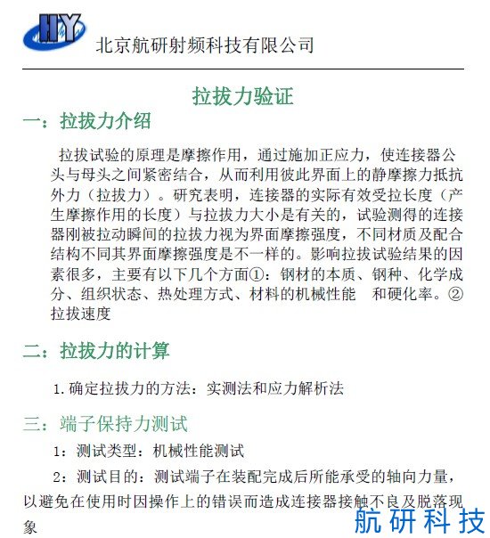 電纜組件拉拔力驗證方法